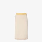 Falda de largo medio de corte recto con cintura elástica. Confección en hilado de algodón y seda color beis claro, con el icónico motivo FF all over en jacquard. Aplicaciones en bloques de color en contraste en la cintura y los laterales en tonos amarillo y rosa.