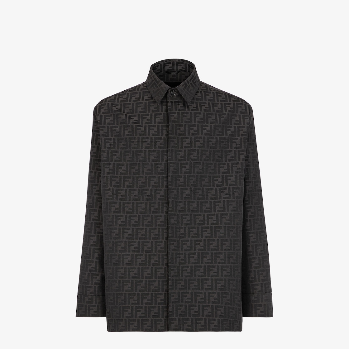 Chaqueta Go To de abotonadura sencilla con cuello de camisa y bolsillos aplicados en el pecho. Cierre con botones ocultos. Confección en lona negra con motivo integral FF en jacquard.