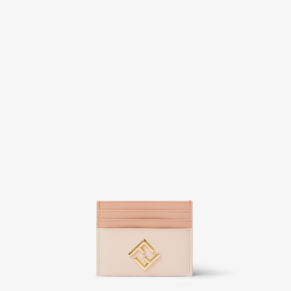Tarjetero FF Diamonds con logo FF diagonal, compartimento central y 6 ranuras para tarjetas. Confección en piel de becerro lisa y granulada en tonos rosas. Accesorios de metal con acabado dorado.