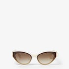 Gafa Fendi First modelo ojo de gato confeccionada en acetato habana. Presenta patillas con macromotivo F diagonal de metal dorado. Lentes ahumadas color marrón.