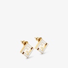 FF motif shaped stud earrings. Bar closure. Made of metal with a gold finish. Embellished with white enamelled details.