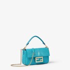 Iconic mini Baguette® bag made of luxury, hand-polished turquoise stingray leather. Decorated with an FF clasp.