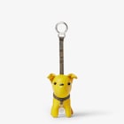 Bijou de sac en cuir jaune. Ce bijou de sac en forme de chien présente un collier en toile FF dans les tons marron et une médaille à logo. Garnitures en métal finition palladium.