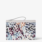 Pochette plate zippée moyen format. En toile FF dans les tons blancs, avec imprimé multicolore Fendi Falena à finition semi-brillante. Détails en cuir gris foncé. Garnitures en métal finition palladium.