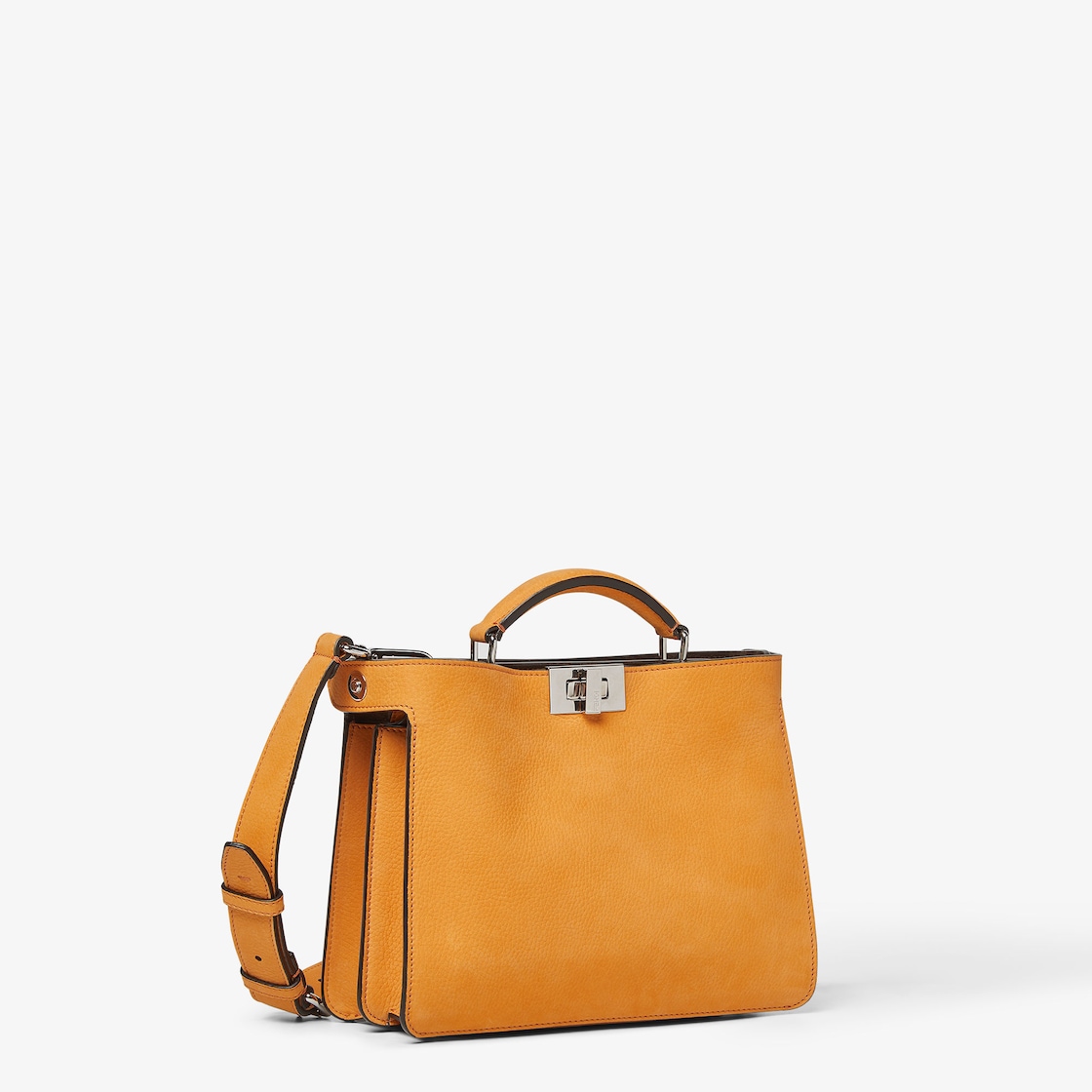 Sac Peekaboo ISeeU, petit format, réalisé en cuir Cuoio Romano orange avec finition suédée. Intérieur contrasté en cuir suédé marron foncé.