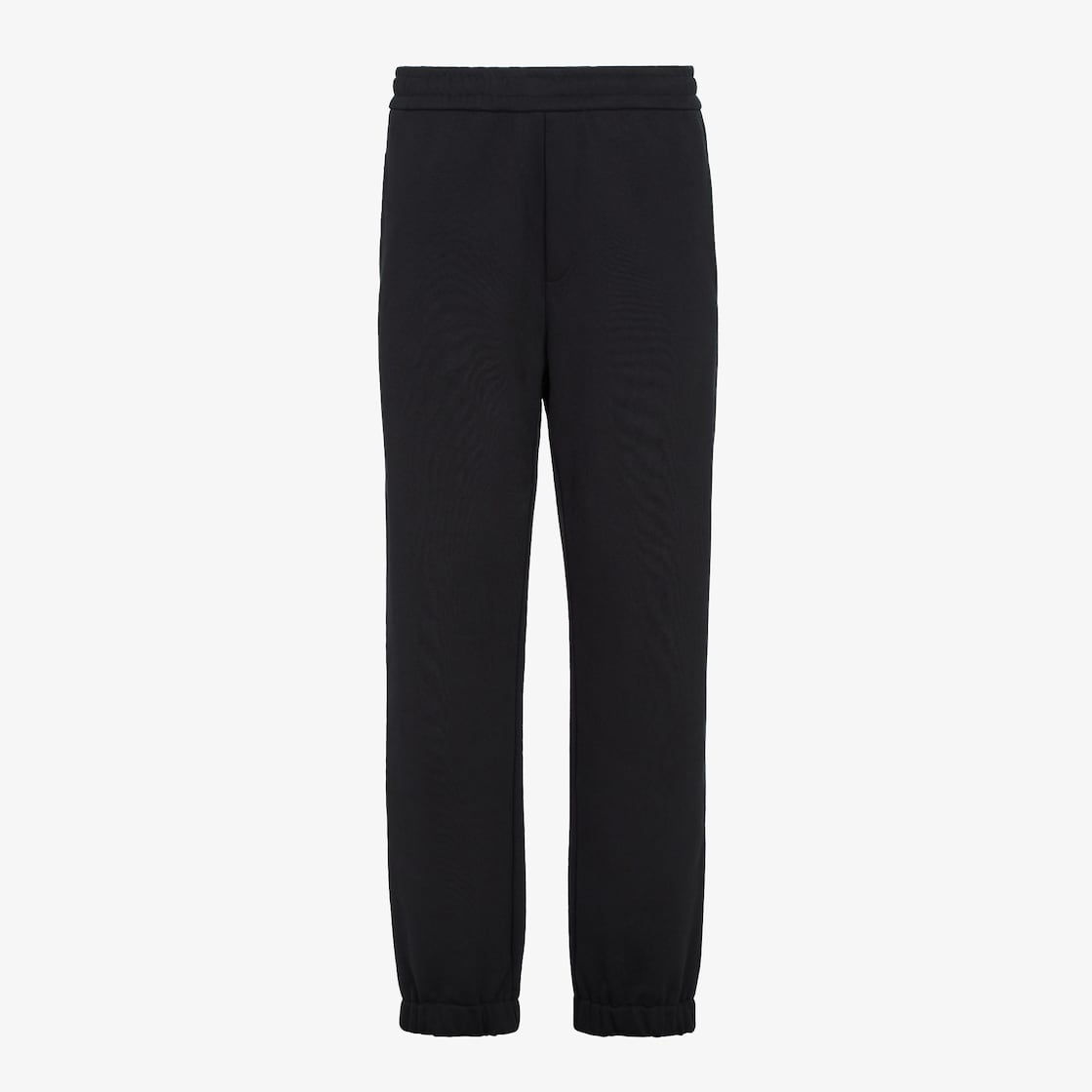 Pantalon de jogging avec élastique à la taille et aux chevilles. Poches latérales et poches arrière passepoilées. 100 % coton noir. Logo FF en métal finition palladium appliquée sur la poche arrière droite.