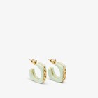 Créoles au design linéaire et élégant, ornées de l’inscription FENDI en métal finition dorée. En métal finition dorée et résine rose pastel. Fermoir clou.