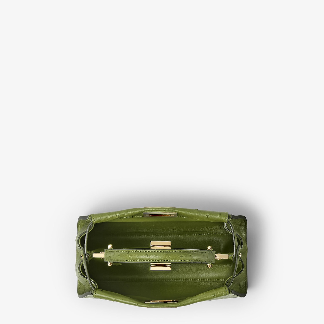Sac iconique Peekaboo, petit format, quintessence du savoir-faire et de la créativité de Fendi. Icône intemporelle, le sac Peekaboo a été créé en 2009. À l’instar du jeu enfantin de cache-cache dont il prend le nom, peek-a-boo, le sac joue sur l’alternance entre beauté extérieure apparente et beauté intérieure cachée.