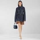 Le sac présente un rabat avant, un fermoir aimanté, un compartiment intérieur doublé en jacquard effet denim, une poche zippée et des garnitures en métal finition dorée.