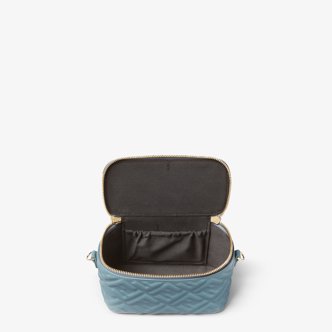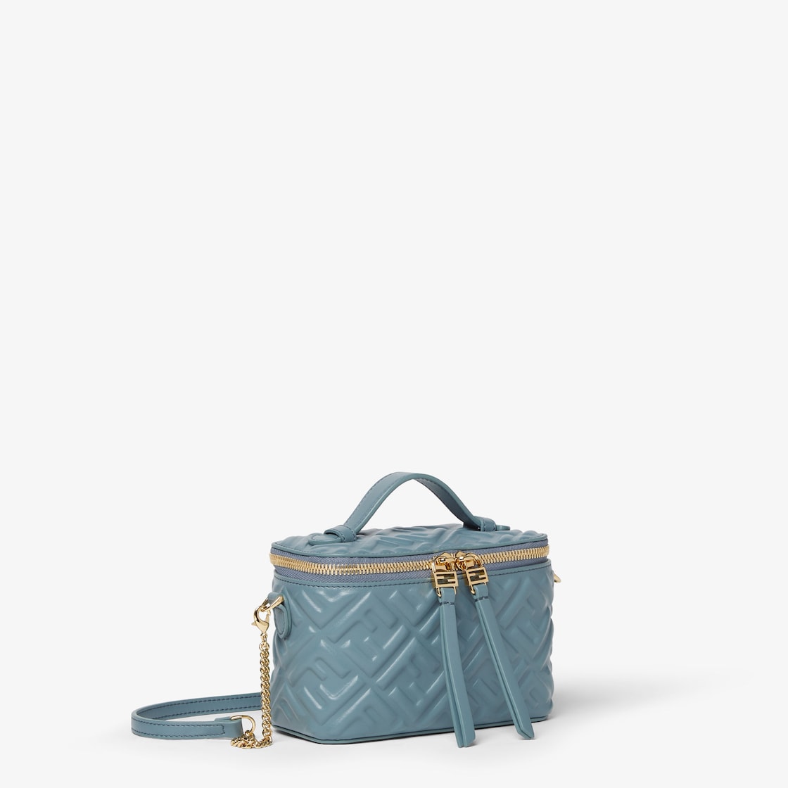 En cuir nappa souple bleu mercure avec motif FF emblématique en relief effet 3D.