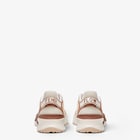 Sneakers Fendi Flow avec lacets élastiques réglables et fermeture à cordon de serrage. Personnalisées avec étiquette en daim et logo FF embossé sur la languette et plaquette en caoutchouc avec logo en relief sur l’arrière du talon. En maille technique rose avec empiècements en daim et cuir dans les tons rose et bordeaux. Détails en caoutchouc. Semelle running 35 mm en caoutchouc avec détail F en diagonale bordeaux.
