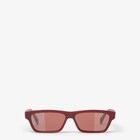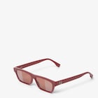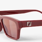 Lunettes Squared FF rectangulaires basses en acétate bordeaux. Branches avec logo FF en métal avec finition ruthénium. Verres couleur rouille avec motif Pequin effet miroir argent.