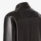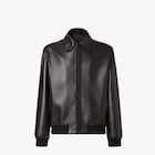 Blouson avec petit col chemise et manches longues. Poignets et bord en maille élastique finement côtelée. Poches latérales passepoilées à la verticale. Fermeture frontale dissimulée. En cuir souple et lisse noir. Grande inscription Fendi brodée en fil ton sur ton au dos.