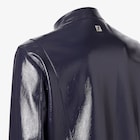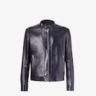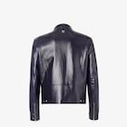 Blouson modèle biker à petit col montant et manches longues. Poches zippées sur les côtés et boutons bûche réglables à l’arrière de la taille. Fermeture zippée en métal. En cuir bleu foncé à finition effet laqué. Détail de FF en métal à l’arrière du col. Doublure en tissu micro FF assorti. Garnitures en métal finition palladium.