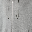 Sweat-shirt à capuche avec cordon de serrage. Modèle surdimensionné. Manches longues à emmanchures basses et poches kangourou sur le devant. Fermeture zippée en métal. En fil de cachemire gris. Détail de micro FF brodé de couleur contrastée sur le lien gauche du cordon de serrage.