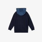 Sweat-shirt enfant avec capuche en denim bleu et manches en jersey bleu foncé. Fermeture zippée sur le devant, passepoil en nylon avec logo FF couleur citrouille et écusson à logo FF sur le devant.