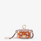 Sac Baguette emblématique, version Nano, avec rabat et fermeture FF par bouton aimanté. La pince permet de l’attacher à un sac plus grand ou à une ceinture. La fine bandoulière réglable et amovible permet également de le porter à l’épaule ou à la main. Intérieur doté d’une poche plate porte-carte de crédit. En satin rose clair, orné d'une broderie en relief composée de paillettes, de cristaux et d'applications miroir effet sculpture en différentes nuances contrastées. Détails et bandoulière en élaphe rose. Garnitures en métal finition dorée.