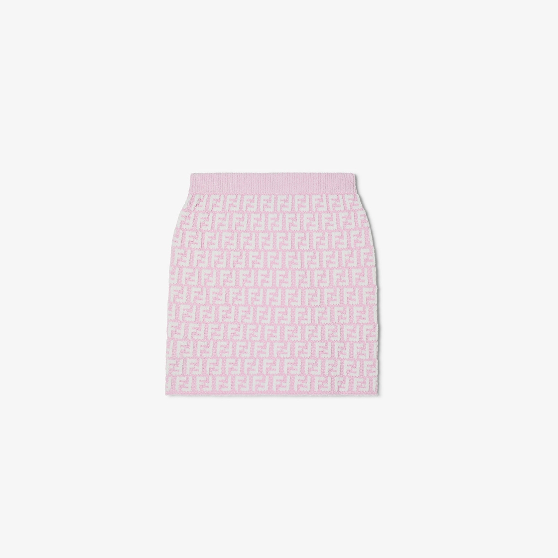 Jupe enfant mini en maille rose avec motif FF blanc. Taille finement côtelée et coupe ajustée. En fil de coton mélangé.