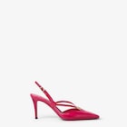 Chaussures à bride arrière avec bout carré et brides enveloppant le pied. Le détail FF en métal, avec design original de la charnière amovible au centre, assure une marche confortable et pratique. En cuir de myxine brillant rose fuchsia. Talon revêtu de cuir ton sur ton. Garnitures en métal finition dorée.