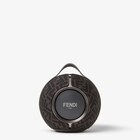 FENDI x DEVIALET Mania portable speaker. Designed in co-branding with Devialet, this innovative 360° stereo speaker features a technical casing with grey and black FF motif and palladium-coloured finish. With unique acoustic mapping technology, it adapts sound to the environment, providing an impeccable audio experience on the go, both at high and low frequencies.
