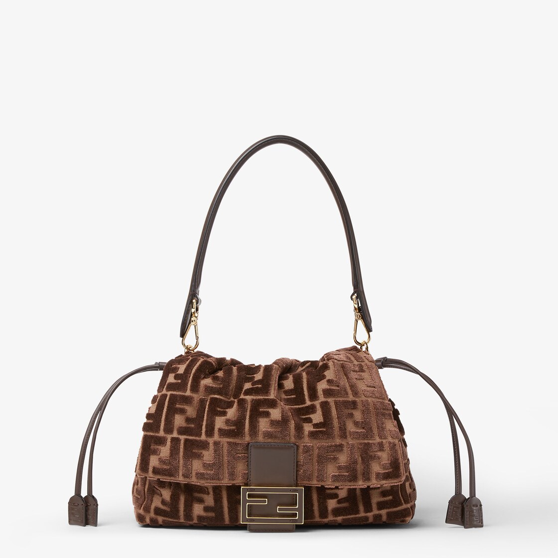 Made of jacquard velvet with a dark brown embossed FF motif on a brown base, decorated with an FF clasp with tone-on-tone leather insert.