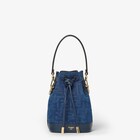 Made of FF denim in shades of blue with a floked texture. Trimmed with dark blue calfskin.