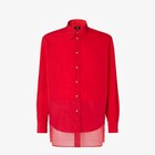 Comfort-fit shirt with long sleeves and classic cuffs and collar. Press stud fastening. Made with red nylon. Embellished with a red silk organza insert at the hem for a double-layer effect. Matching embroidered FF Selleria logo on the back of the collar.