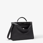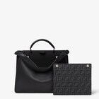 Medium Peekaboo ISeeU bag made of black Cuoio Romano leather and finished with 713 hand-sewn tone-on-tone macro topstitches, an emblem of the iconic Selleria workmanship handed down through generations of Fendi artisans since 1925.