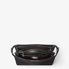 The interior is organised into two compartments divided by a stiff partition, the front features the iconic twist lock, and there is a zip fastening on the back. The removable inner pocket is made from black leather with a hand-stitched Fendi Selleria numbered silver tag on one side and black FF canvas on the other side. Metalware with black enamelled finish.