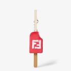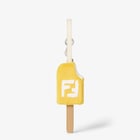 Bag charm made of yellow mink with white FF inlay. The charm is distinguished by its exclusive cremino-shaped design. Palladium-finish metalware with logo clip.