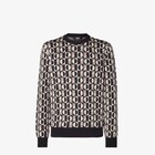Regular-fit crew-neck pullover. Made of jacquard wool yarn with a three-dimensional Fendi Optical geometric motif in brown, white and black. Plain black ribbed edges.