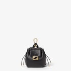 Nano backpack decorated with an FF clasp. Made of soft, orange nappa leather. Features a front flap, press stud button clasp and drawstring closure, with tone-on-tone leather cords. The clip allows it to be attached to larger bags or belts as a charm. Can be also be worn on the wrist thanks to the elasticated straps. Gold-finish metalware. Can hold a credit card, lipstick and earbuds.