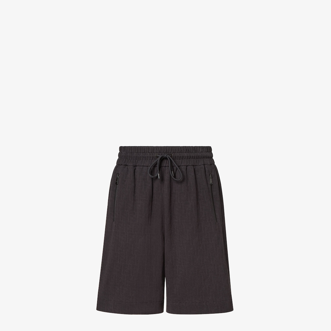 Bermudas with elasticated drawstring waist. Side pockets with zip. Made of black, 100% cotton piqué FF Jacquard.
