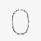 Chain link necklace fastened with small clip. Made of metal with a palladium finish. Decorated with FF Baguette motif.
