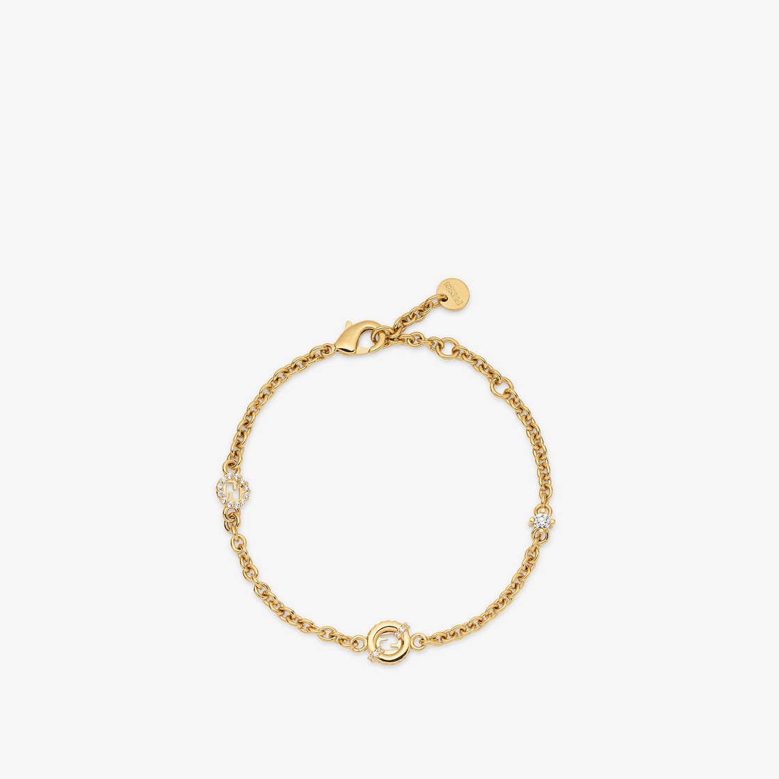Chain bracelet with the new EverRound Fendi logo. Adjustable snap hook clasp. Made of gold-finish metal with natural crystal bezel details.