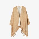Lightweight poncho made of ivory pure wool yarn with dove grey details. The Selleria macro check motif creates a refined, three-dimensional effect with an interplay of textures. Jacquard FF details and contrasting interior in pale dove grey.