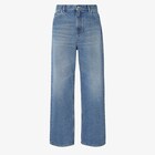 Relaxed-fit five-pocket trousers. Embellished with metal rivets and belt loops at the waist. Concealed zip and tack button closure. Width at the hem: 26 cm. Made of denim fabric with light blue stone-wash treatment. Brown leather patch with Selleria FF detail on the back.
