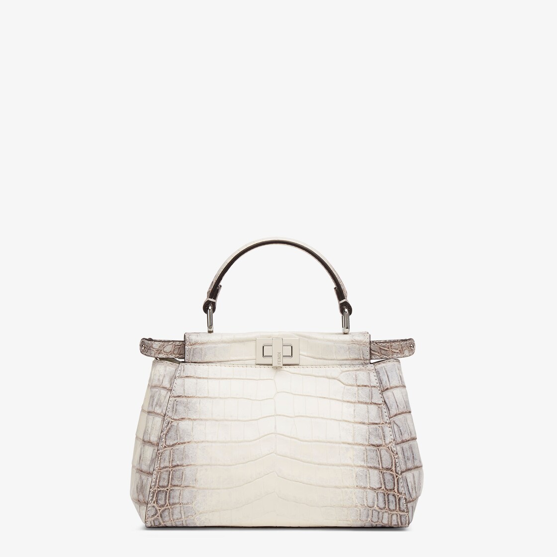 Small iconic Peekaboo bag, made of exquisite crocodile leather in hand-decorated in graduated shades of white, embellished with the classic twist lock on both sides.