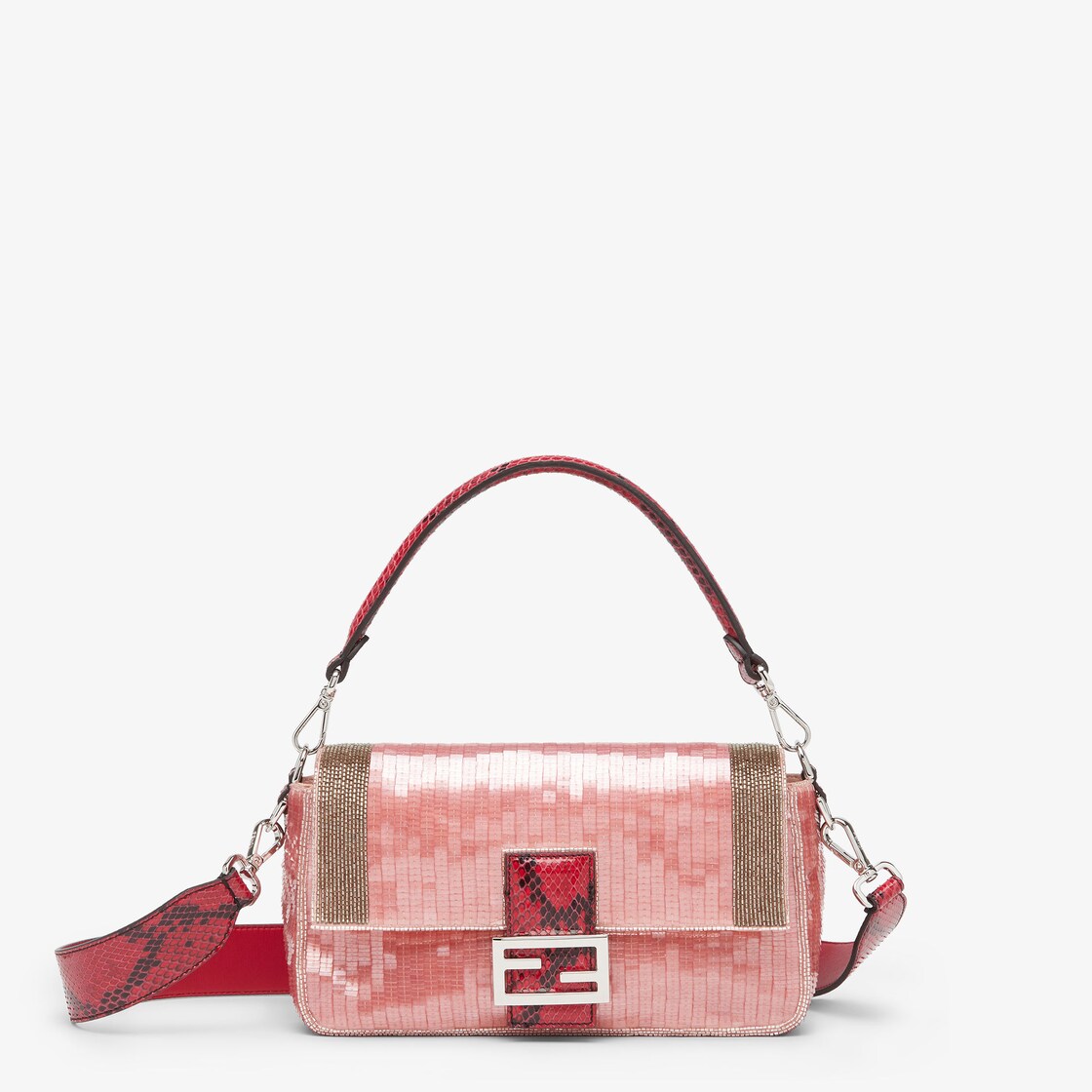 Baguette #12的灵感源自1999-2000年秋冬系列的“亮片刺绣”Baguette手袋。手袋纯手工镶饰9,200个方形亮片和大约3,000个微型串珠,呈现粉红色色块效果。饰有红色蟒蛇皮细节。