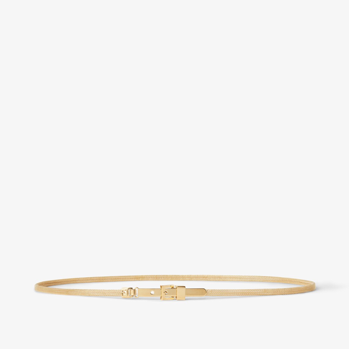 細版皮帶飾有金屬皮帶環和可調式開合。金色表面金屬網布。扣環一邊飾有FF標誌。