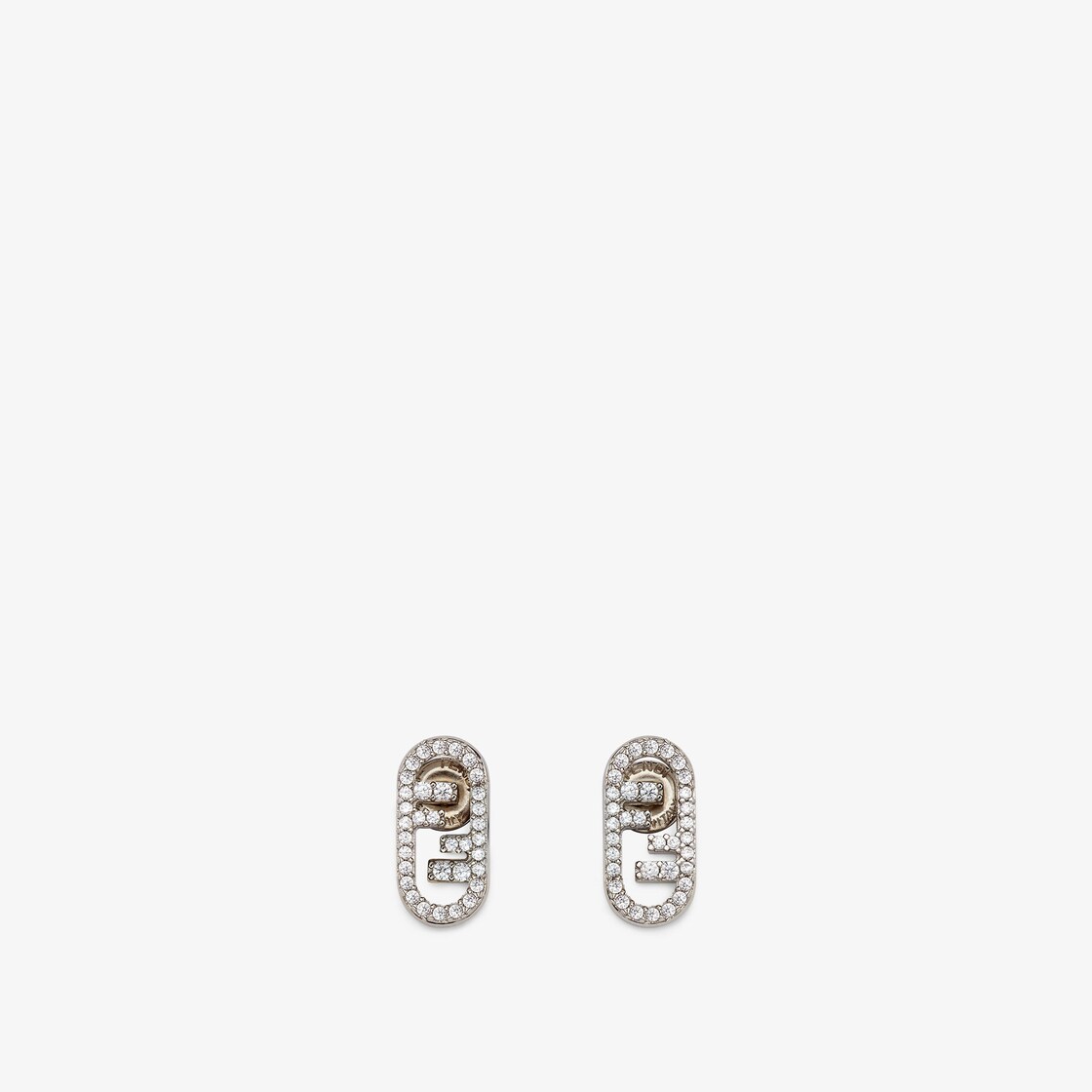 FENDI O'Lock主題圖案耳環。銀色飾面金屬製成。綴有白色密鑲水晶。
