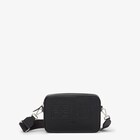 以黑色全紋理皮革製成的小巧肩背包,搭配有立體效果的FENDI Roma標誌。
