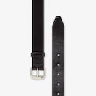 皮帶附帶扣,刻有FF圖案。低光澤黑色皮革製成。復古鈀色飾面金屬製品。