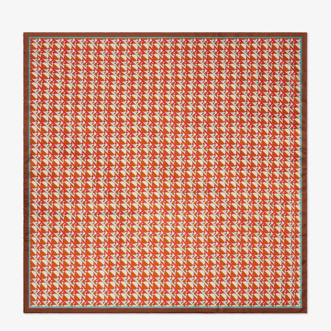 真絲方形圍巾,飾有帶立體效果的棕色和紅色滿版FENDI Optical幾何圖案印花。以條紋色塊飾邊,讓風格更為出色。手工飾邊。