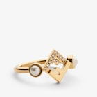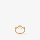 細長戒指飾有中央FF標誌細節。金色飾面金屬製成。飾有兩顆人造珍珠與鑲嵌於框座中的白色水晶。