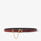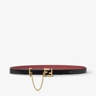 雙面皮帶,搭配FF釘扣。環圈和金屬鏈。皮革製成,一面是黑色,另一面是棕色。金色飾面金屬製品。