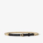 綴有黑色皮革的鏈式腰帶。開合搭配FF Diamonds扣環和皮革環。金色飾面金屬製品。
