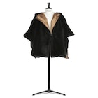 連帽斗篷,可折疊方便收納或旅行攜帶。側邊開衩搭配側邊鈕扣,創造衣袖效果。黑色貂皮製成。特殊的Featherlike羽狀設計讓單品極為輕盈。相配的絲質襯裡。飾有皮革標誌標籤。