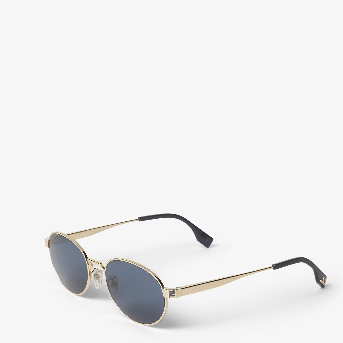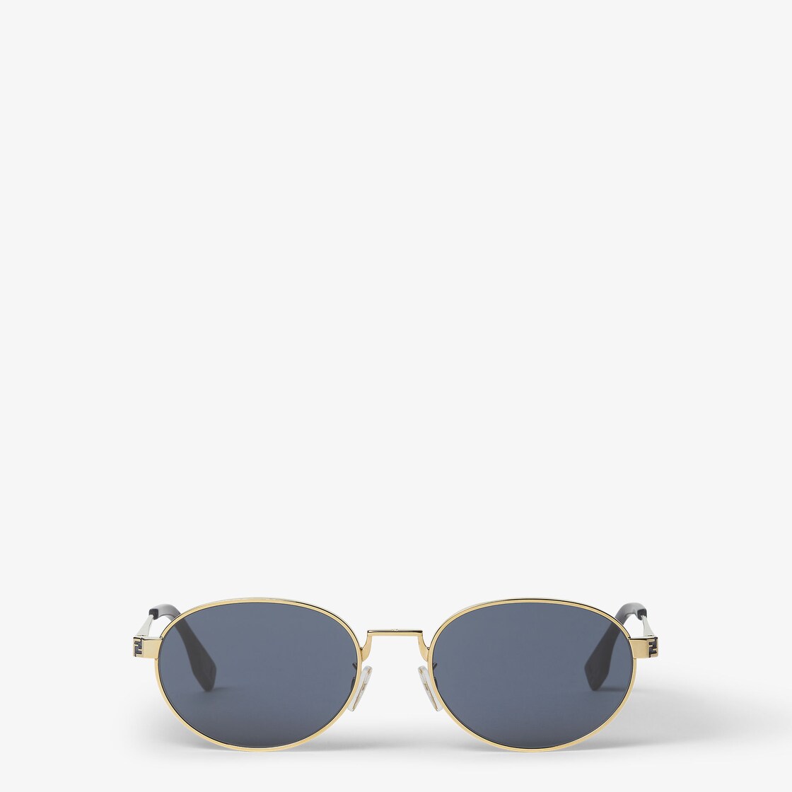 金屬橢圓形太陽眼鏡搭配金色飾面。丹寧藍色琺瑯飾面FF標誌。醋酸纖維鏡臂腳飾有FF圖案。深丹寧藍色鏡片。可調式鼻墊。