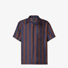短袖襯衫採用保齡球衫衣領設計。右側胸前貼袋,正面有相襯顏色的鈕扣開襟。真絲製成,飾有滿版棕色和海軍藍色Pequin條紋圖案印花。